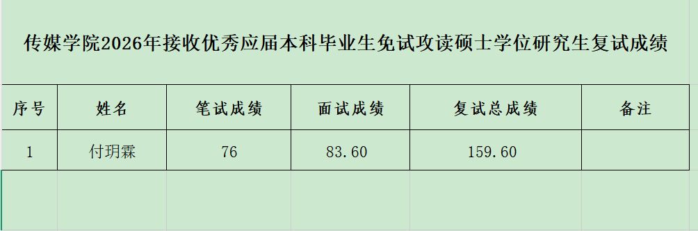 传媒学院2026年接收优秀应届本科毕业生免试攻读硕士学位研究生复试成绩
